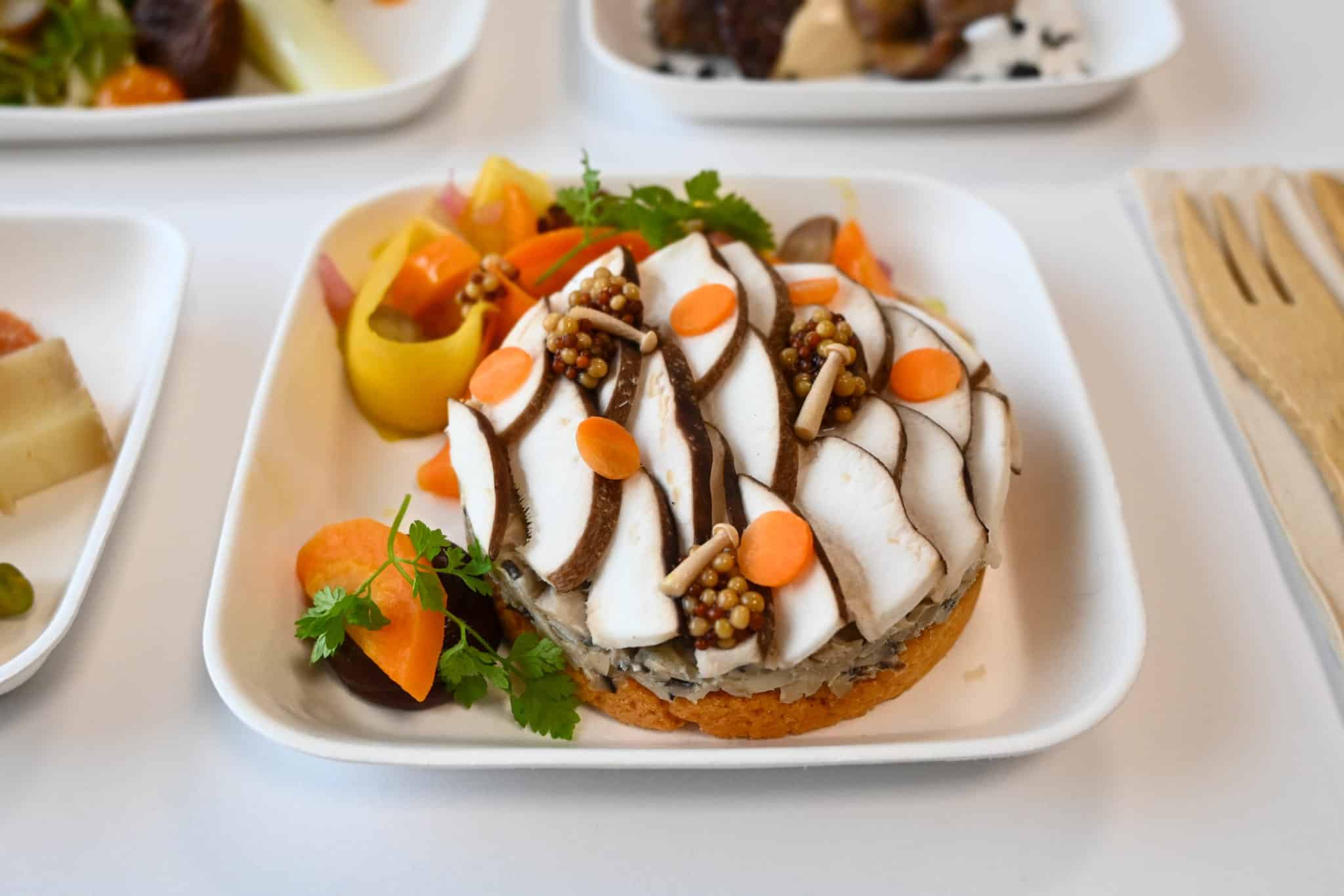 Tartelette champignons, éclats de châtaignes et carottes, pickles shimenji*