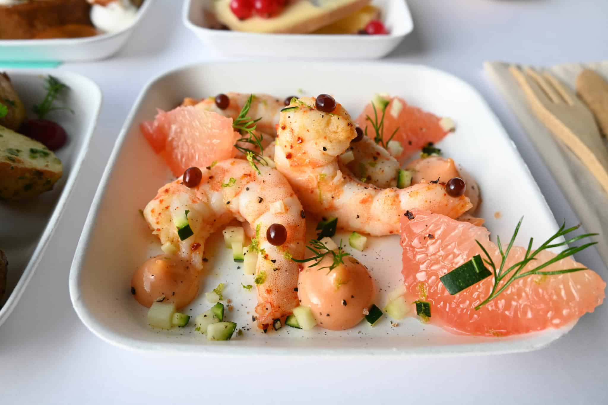 Crevette sauce cocktail au poivre Timut, concombre et pomelos*