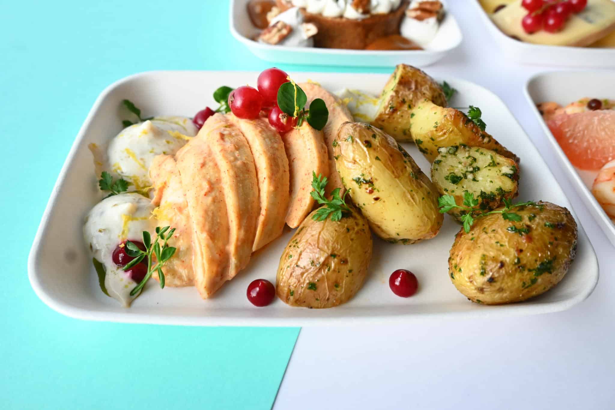 Poulet Gaston Gérard (moutarde, comté et paprika), pommes de terre grenailles confites**