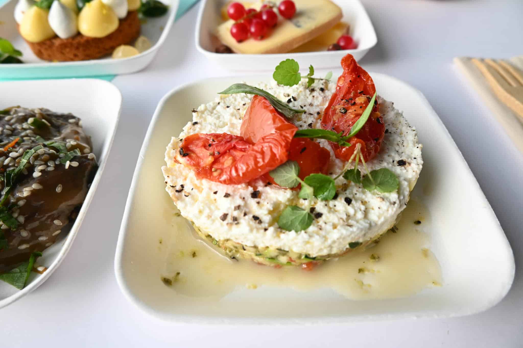 Tartare de courgettes et basilic, tomates confites et ricotta*